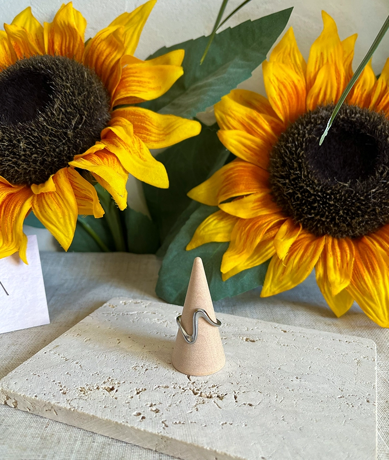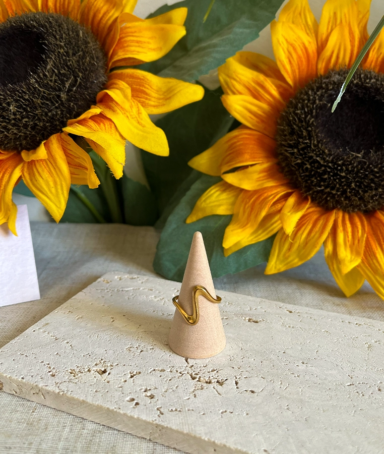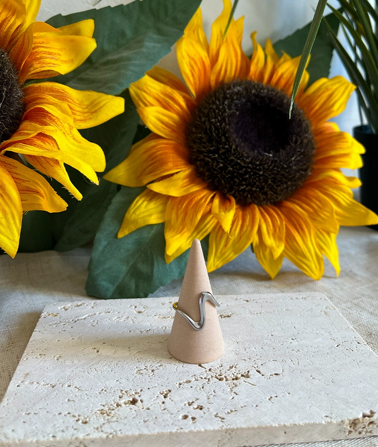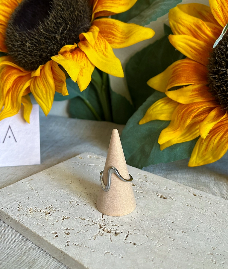 La bague Nyssa séduit par son design ondulé et épuré, symbole de mouvement et de légèreté. Sa ligne fluide épouse le doigt avec élégance pour un rendu moderne et raffiné. Conçue en acier inoxydable, elle résiste à l’eau et conserve tout son éclat au fil du temps. Disponible en version dorée ou argentée.